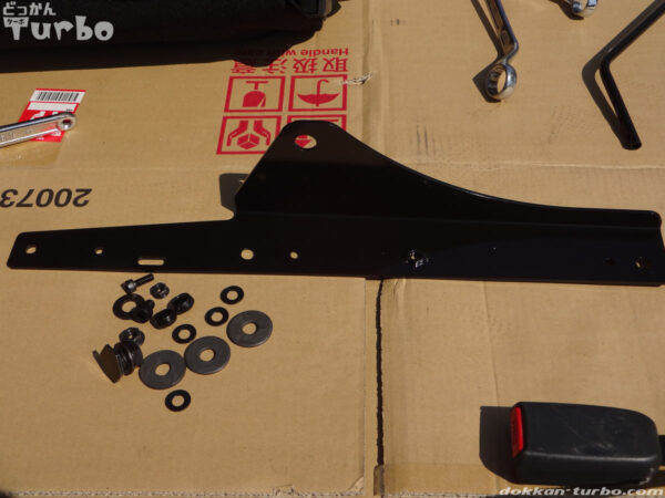 まず、ベースフレームの箱を開けると、ベースフレームの他に、大量の専用ボルト類、保証書や取り付け手順書が入っていました。